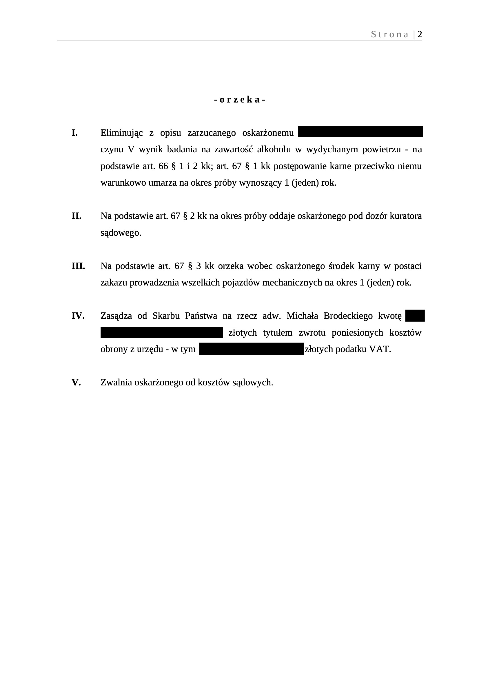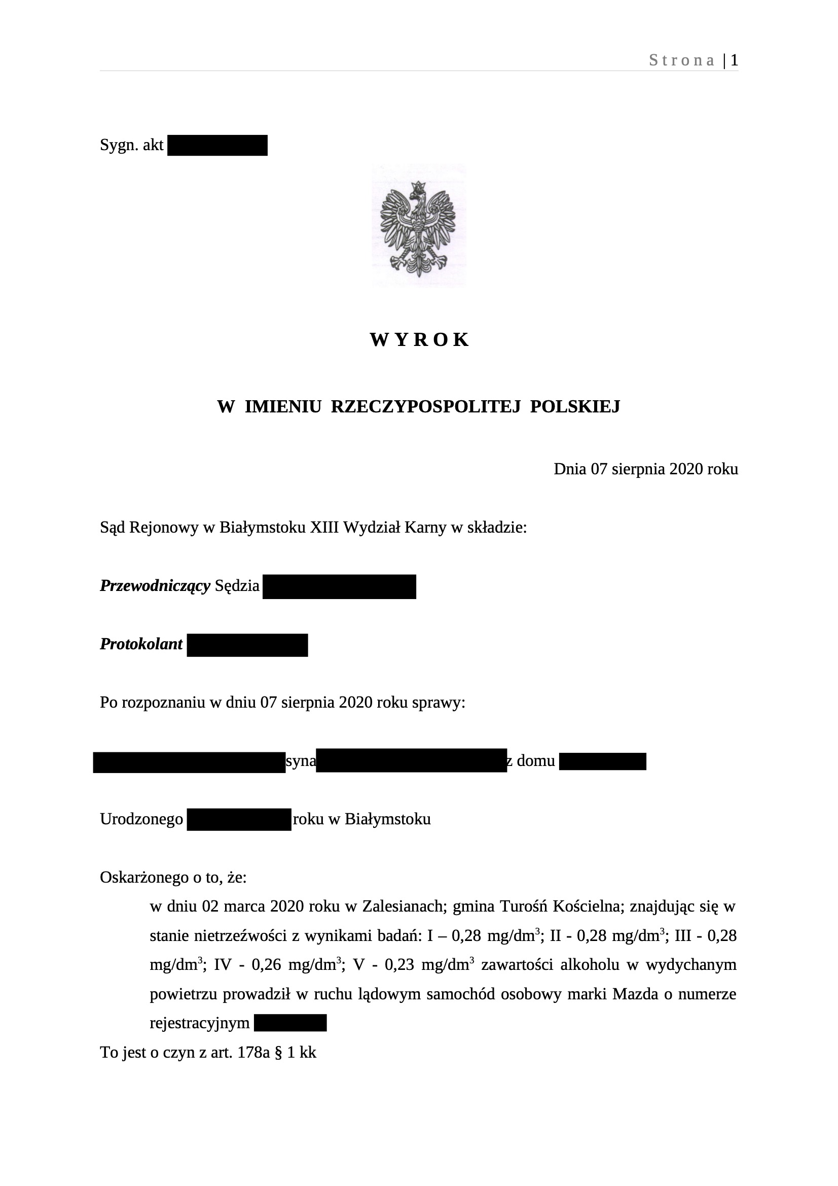 Poniżej wyrok Sądu Rejonowego w Białymstoku:
