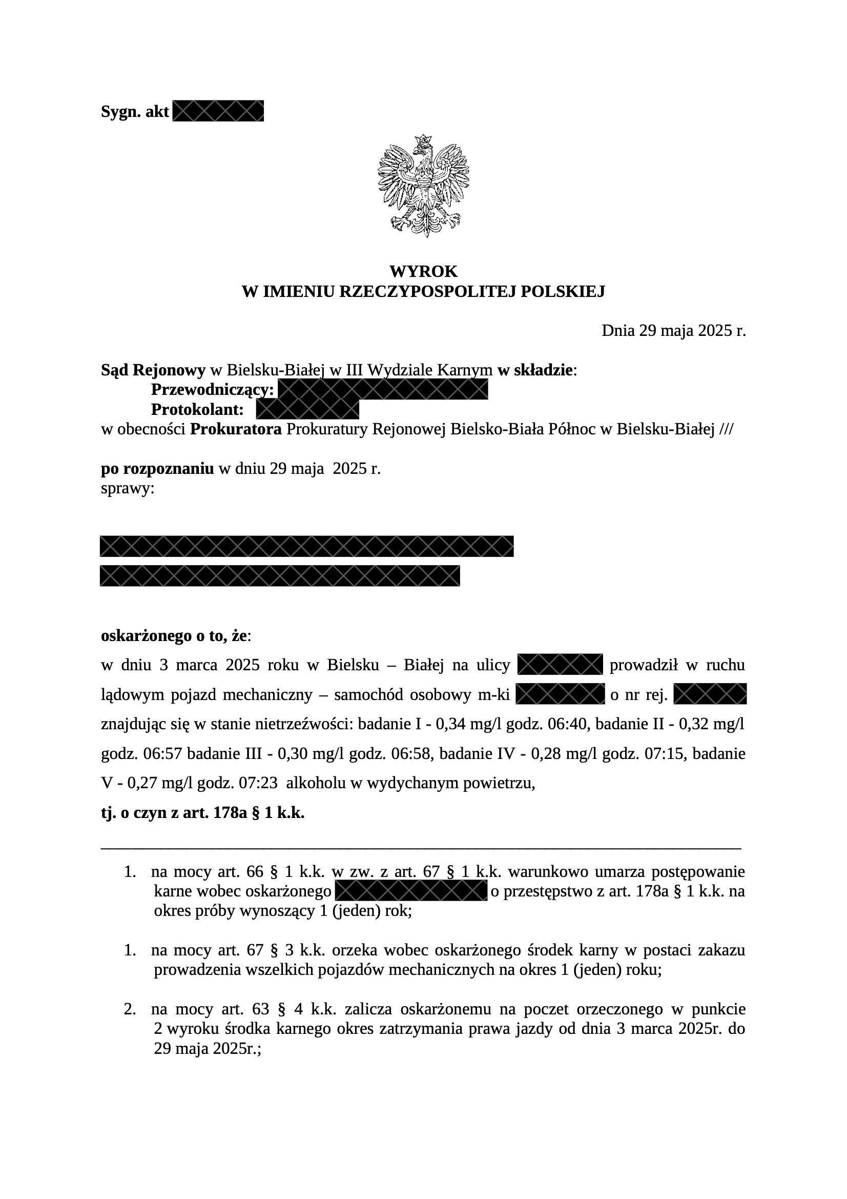 Poniżej wyrok Sądu Rejonowego w Bielsku-Białej: